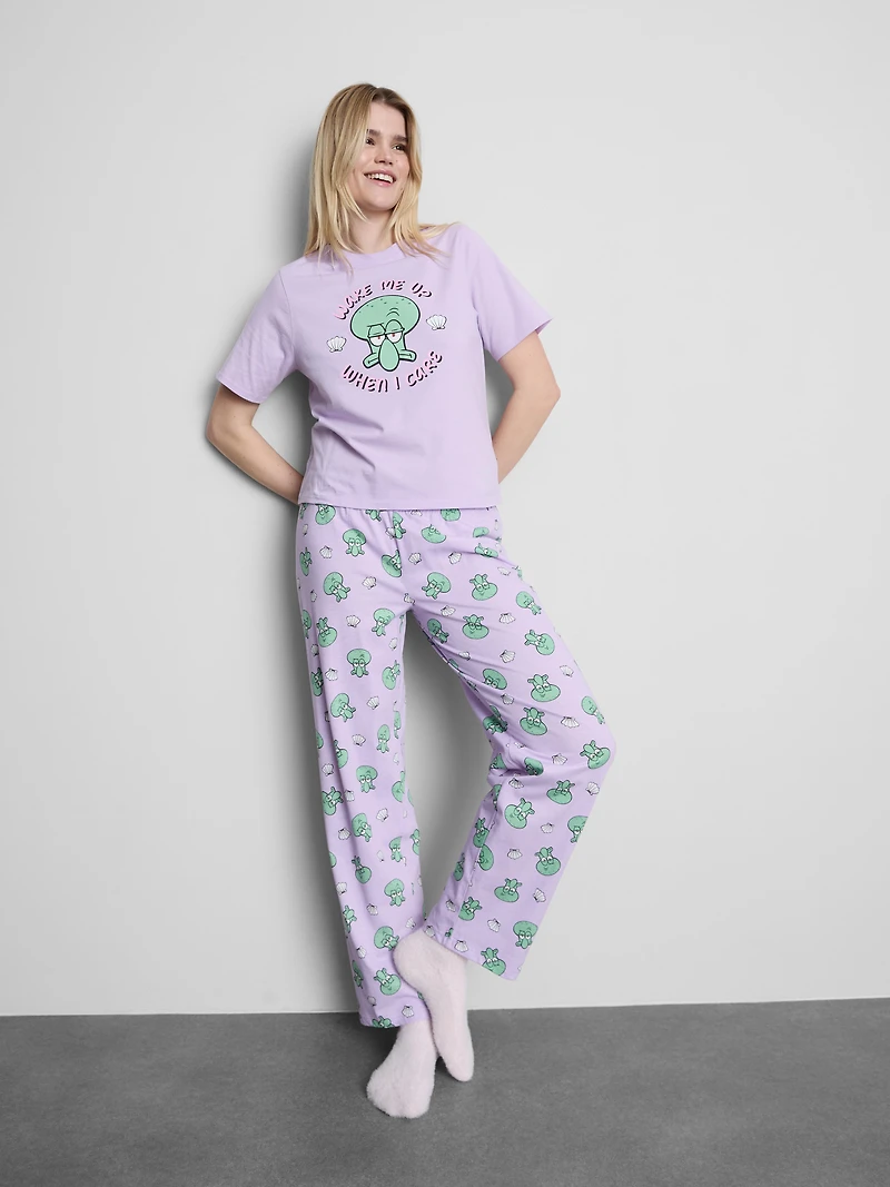 SpongeBob pajama set with Squidward graphics and straight-leg bottoms