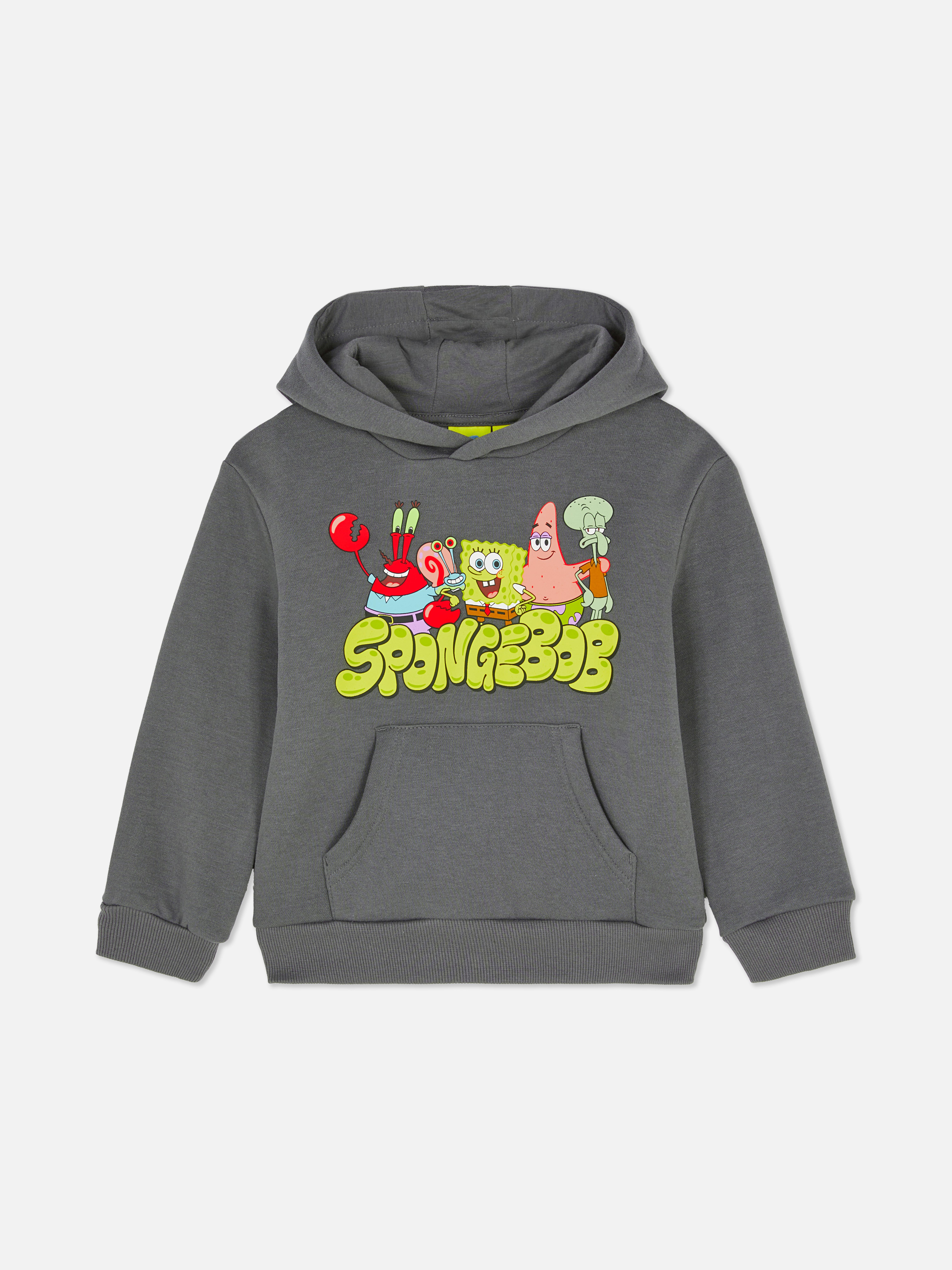 A SpongeBob SquarePants character pullover hoodie with a kangaroo pouch pocket and rib trims