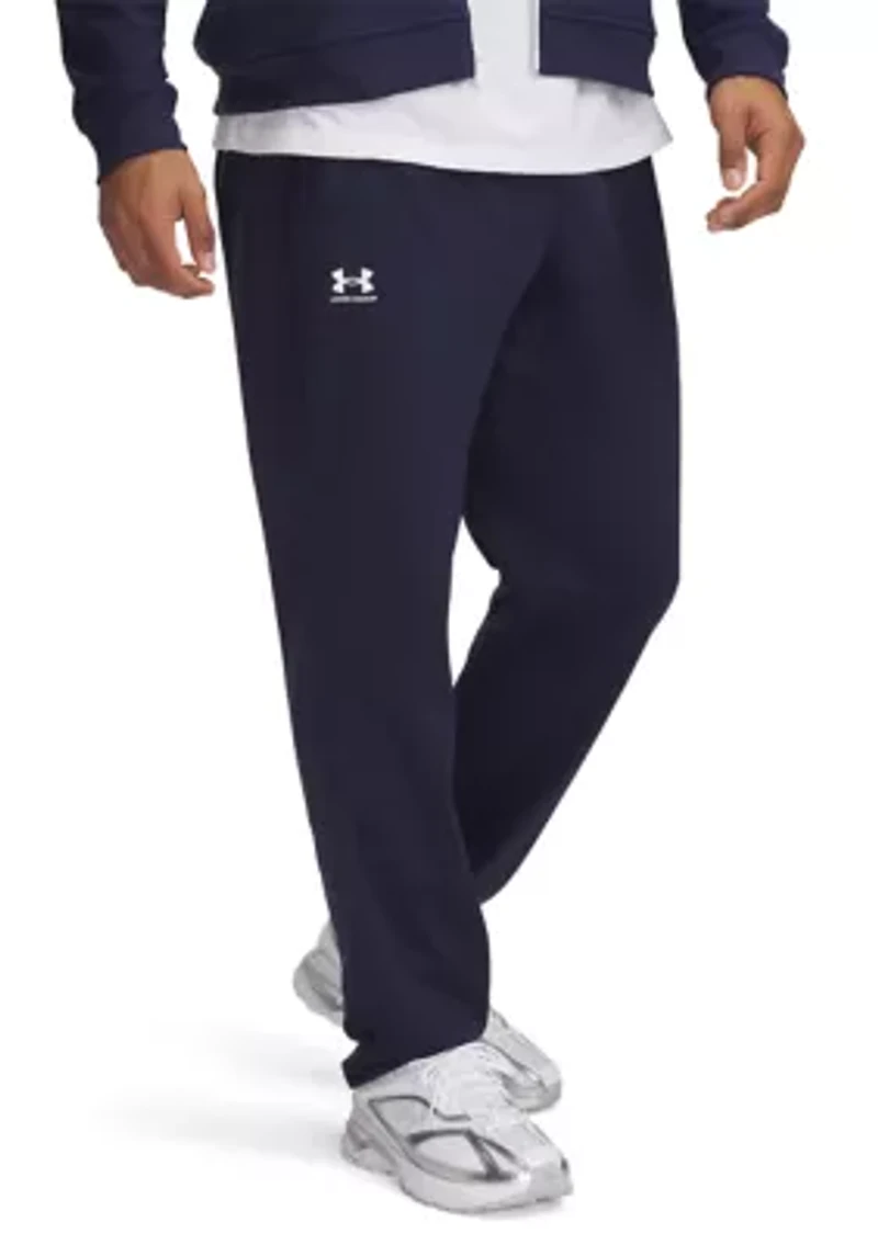 Under Armour®'s features a smooth tricot knit exterior complemented by a brushed interior, providing soft comfort and warmth. Crafted from polyester, these pants effectively wick sweat and dry quickly. With a back-zip pocket and an elasticized drawstring waistband, these loose-fitting pants are designed to provide active comfort. Drawstring elastic waistband 1 back zip pocket Athletic fit Imported Material & Care Polyester Machine washable