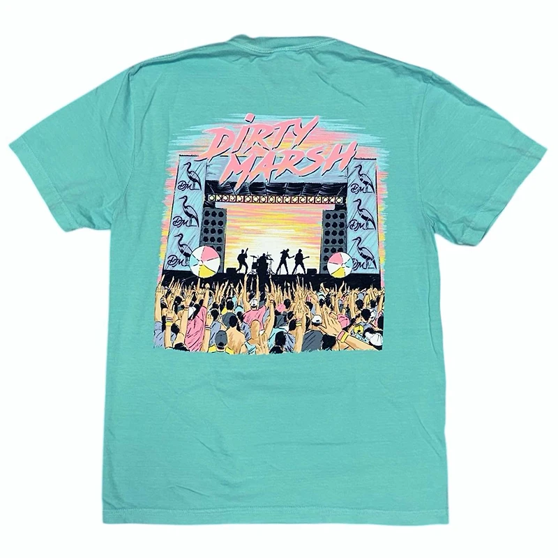 Shop the Dirty Marsh Spring Break T-Shirt featuring a vibrant concert-inspired graphic—perfect for beach days, festivals, and laid-back coastal style.