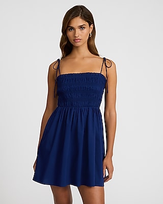 Square Neck Tie Strap Smocked Mini Fit and Flare Dress in Franklin, TN