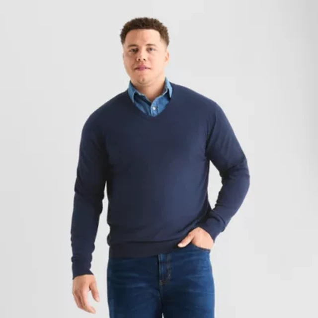 St. John's Bay Fine Gauge Big and Tall Mens V Neck Long Sleeve Pullover Sweater
