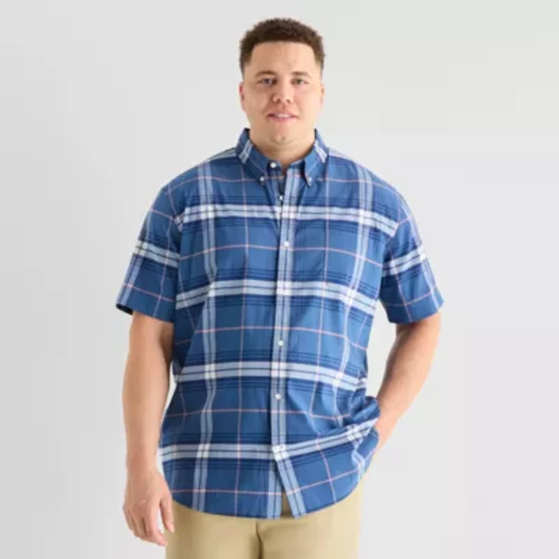 St. John's Bay Performance Mens Short Sleeve Classic Fit Big and Tall Button-Down Shirt