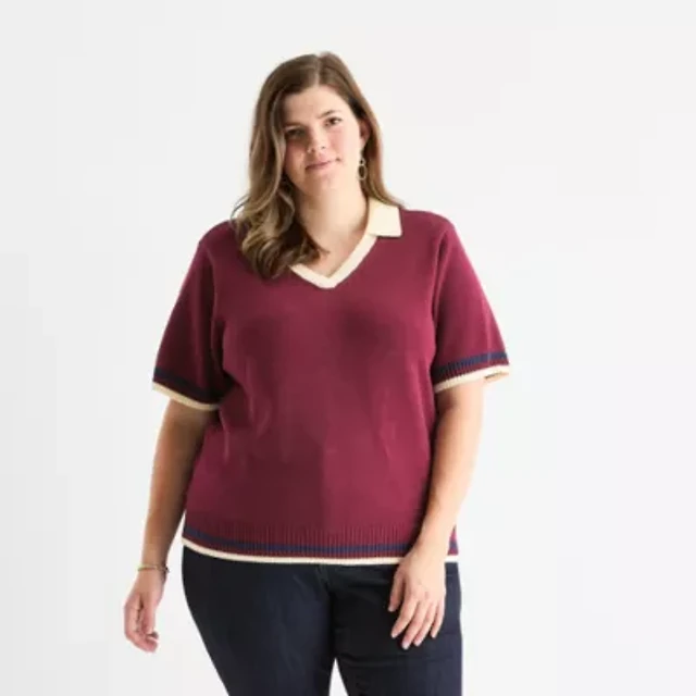 St. John's Bay Plus Womens V Neck Short Sleeve Pullover Sweater