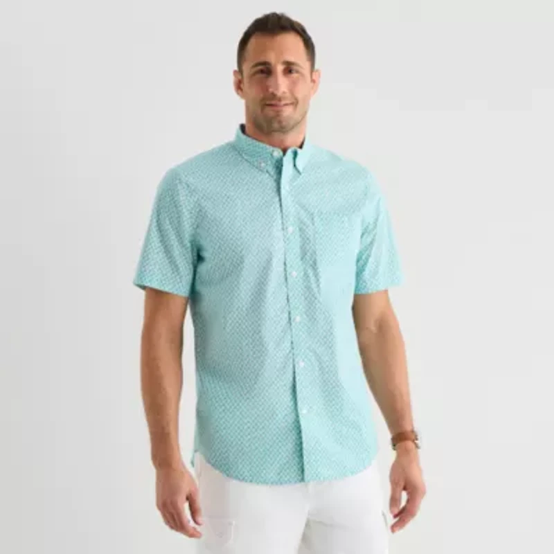 St. John's Bay Stretch Poplin Mens Short Sleeve Classic Fit Button-Down Shirt