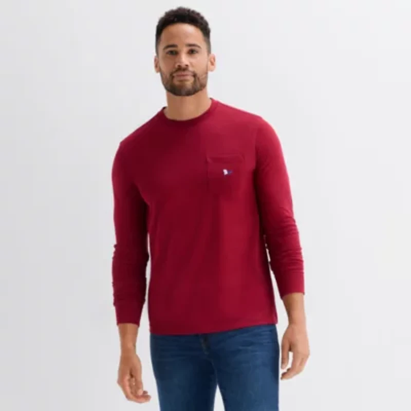 This St. John's Bay men's long-sleeve tee is the perfect addition to your year-round wardrobe. Made from 100% cotton, it has long sleeves, an embroidered chest pocket and a crew neck. Wear it with jeans or pants.