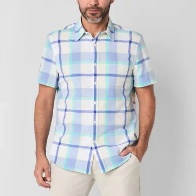 St. John's Bay Textured No Tuck Mens Short Sleeve Classic Fit Button-Down Shirt