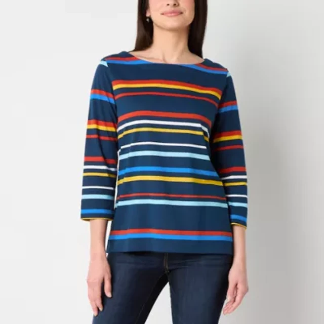 St. John's Bay Womens Boat Neck 3/4 Sleeve T-Shirt