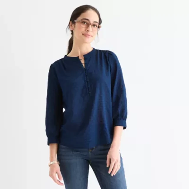 St. John's Bay Womens Round Neck Long Sleeve Blouse