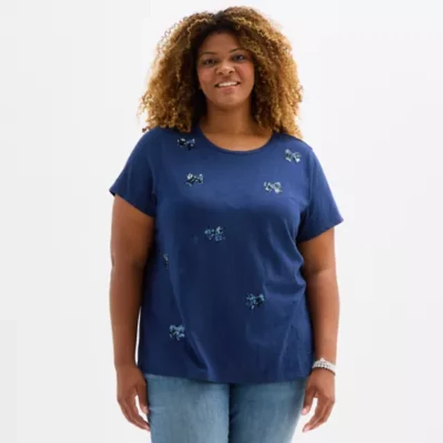 St. John's Bay Womens Plus Crew Neck Short Sleeve Regular Fit Graphic T-Shirt