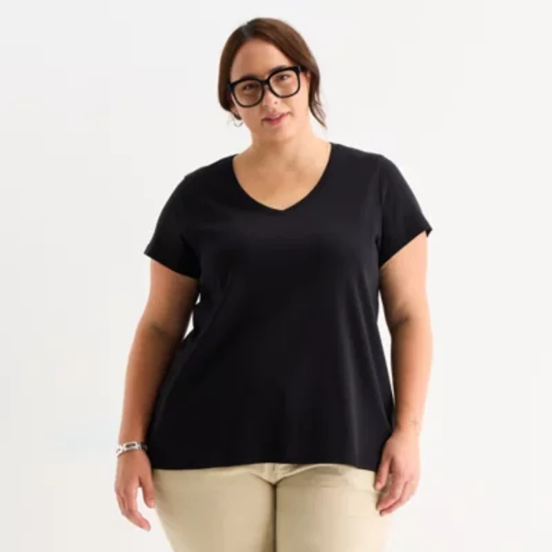 St. John's Bay Womens Plus Easy-on + Easy-off V Neck Short Sleeve Adaptive T-Shirt in Franklin, TN