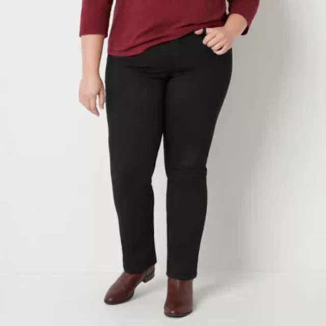 St. John's Bay Womens Plus Secretly Slender Mid Rise Straight Leg Jean