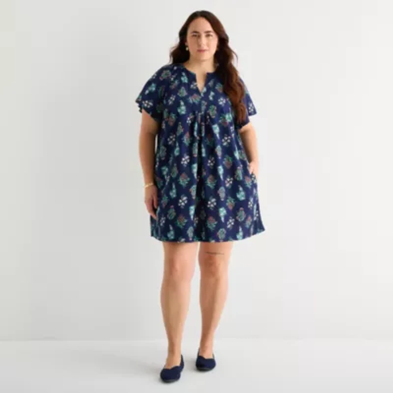 St. John's Bay Womens Plus Short Sleeve Sheath Dress