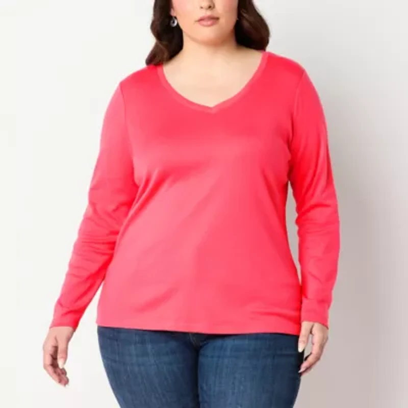 St. John's Bay Womens Plus V Neck Long Sleeve T-Shirt