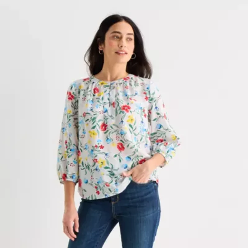 St. John's Bay Womens Split Crew Neck 3/4 Sleeve Blouse