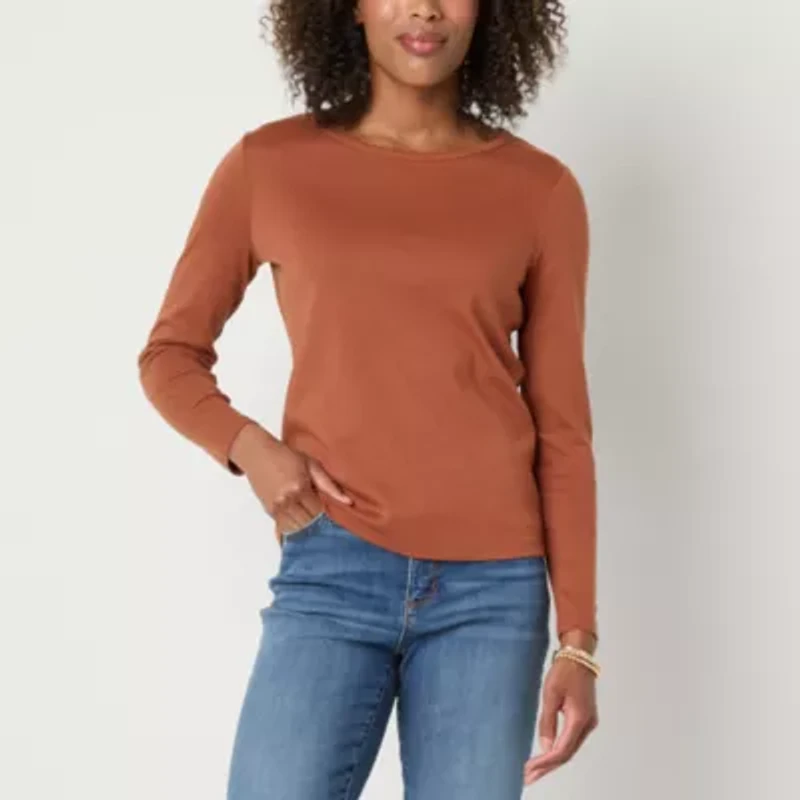 St. John's Bay Womens Tall Crew Neck Long Sleeve T-Shirt
