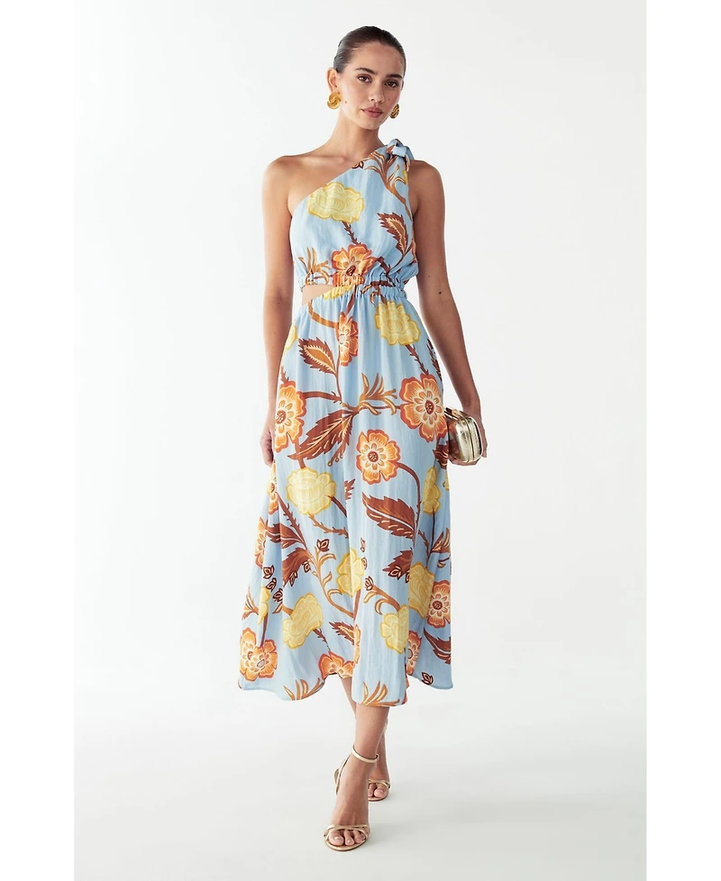 The Amile Midi Dress by St Mrlo is a vibrant woven midi-length dress that captures effortless summer elegance. Adorned with a romantic floral print in soft blue, yellow, and terracotta tones, this dress delivers a contemporary take on seasonal dressing. Its dynamic one-shoulder design creates an asymmetric profile that feels both modern and sophisticated.
