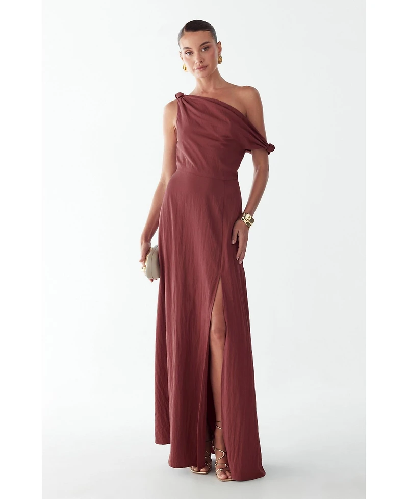 The Elliot Maxi Dress by St Mrlo is a woven maxi-length dress that commands attention with its one-shoulder design and asymmetric neckline. This floor-sweeping piece drapes with understated sophistication, balancing bold architectural details with fluid movement. The invisible side zip ensures a seamless finish, while internal bodice lining provides structure and comfort against the skin.