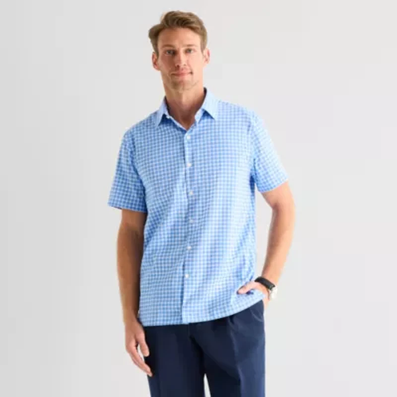 Stafford Cool Tech Mens Short Sleeve Regular Fit Stretch Fabric Wrinkle Free Button-Down Shirt