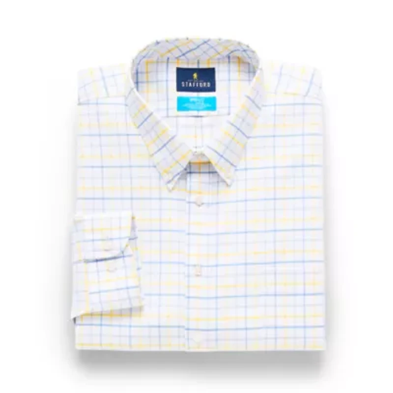 Style and performance meet in this Stafford Coolmax button-down men's dress shirt. This long-sleeve button-down is cut for a regular-fit from wrinkle-free stretch-cotton to keep you confident all day. Team it with a pair of suit pants.