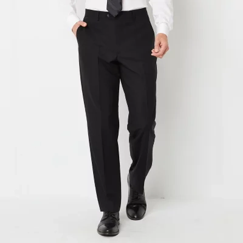 This pair of Stafford men's big and tall signature suit pants are an essential for smart dress looks. This straight-leg style is made from a stretch-wool blend in a classic-fit featuring an adjustable waist with hook-and-eye, button, and zip closures, plus side and back pockets. Wear them with the matching suit jacket for a complete look.