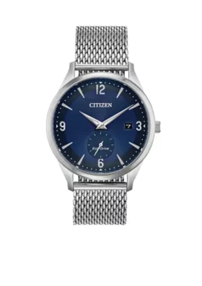 The Drive watch from Citizen BTW is featured in a stainless steel case paired with classic stainless steel Milanese mesh bracelet sporting a clean, simple design and uncluttered details. The cobalt blue dial features a sub-sweep second hand and has date display at 3 o'clock. 40mm case size Stainless steel Milanese mesh bracelet Cobalt blue dial Date display Never needs a battery Sub-sweep second hand 5-year limited liability warranty Imported Material & Care Stainless steel Requires specialty care