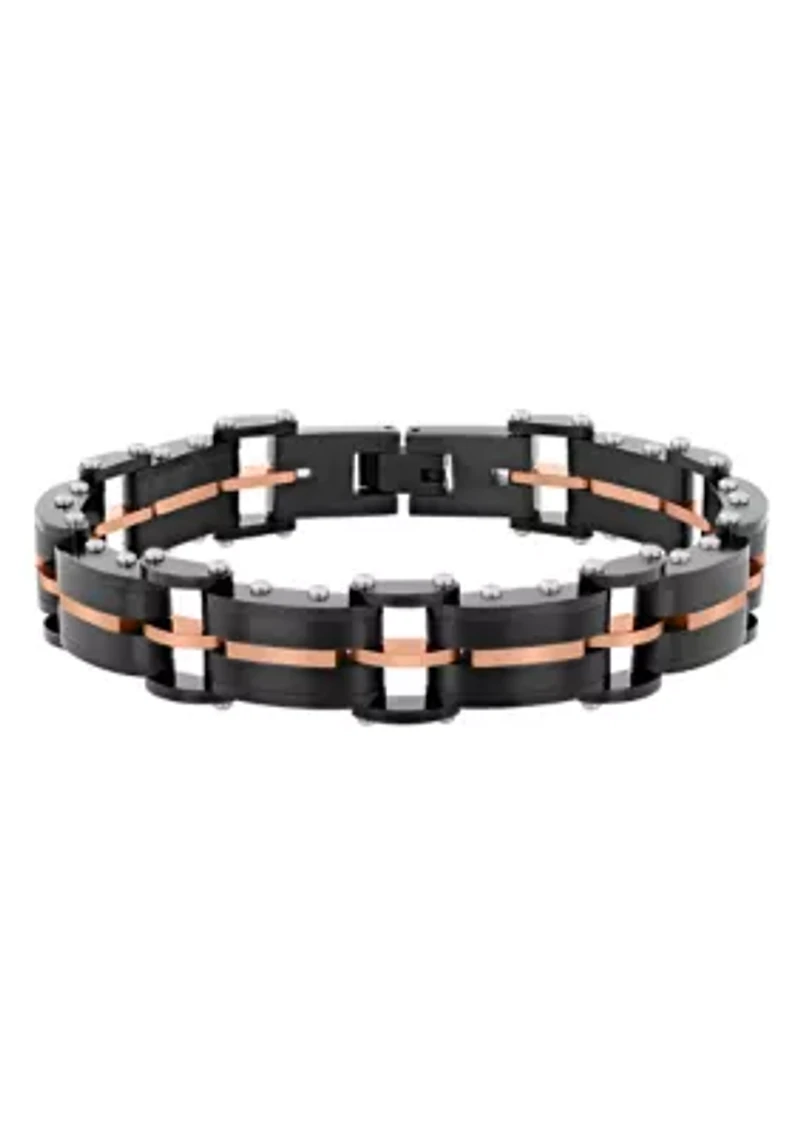 Stainless Steel Link Bracelet with Black and Rose Finish