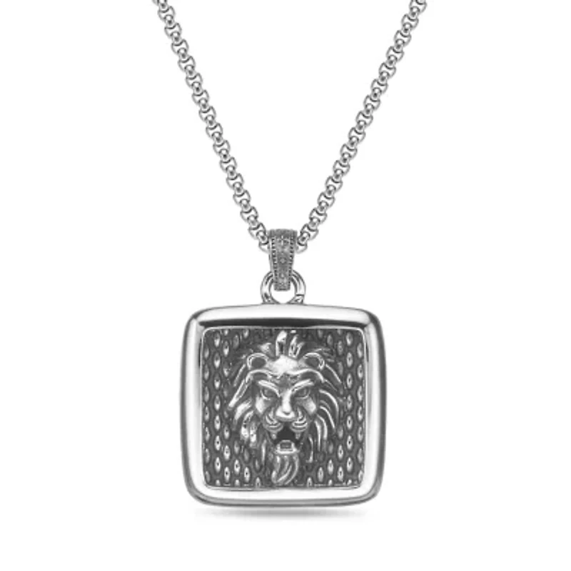 Command attention with this bold stainless steel lion pendant necklace, featuring a detailed lion design on a 24-inch round box chain secured with a lobster-claw clasp, creating a powerful and stylish statement piece perfect for everyday wear or special occasions. Lobster closure Polished finish China Imported Product Specifications 24-in. x 40mm x 32mm Material & Care Metal, Stainless steel Clean with a soft cloth.