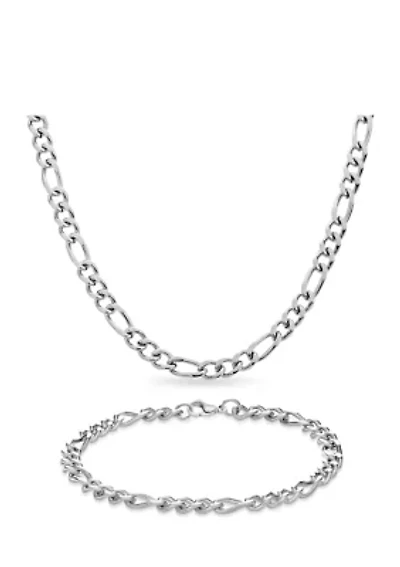 Stainless Steel Figaro Necklace and Bracelet Set
