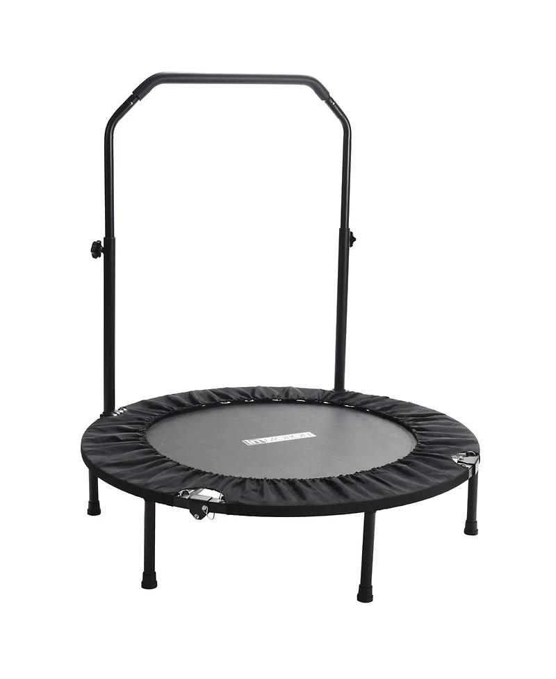 Boost your fitness with the 40-inch inMotion Trampoline with Adjustable Handlebars. With 5 height-adjustable handlebars and a spacious jumping surface, it offers stability and comfort for all users. Built with a reinforced steel frame and high-tension springs, this trampoline provides a quiet, low-impact bounce ideal for cardio, strength, and balance training. Easy to assemble and durable, it s perfect for home workouts. Includes free access to the muuv app for personalized audio coaching, guiding you through 500+ minutes of tailored workouts per month. Fun, effective, and versatile—start your fitness journey with inMotion today.