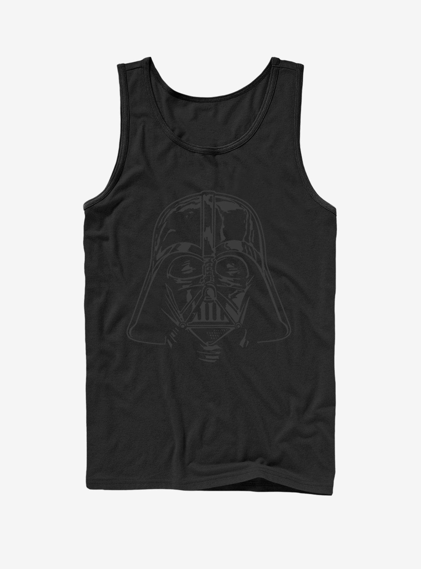 The iconic image of Darth Vader's helmet is enough to strike fear into the hearts of rebels across the galaxy. Now you can make this epic Star Wars symbol a part of your wardrobe with the Star Wars Darth Vader Helmet Black Tank Top which features Darth Vader's helmet printed in black on a black shirt. 100% Cotton.