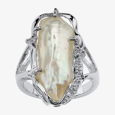 Womens White Mother Of Pearl Sterling Silver Oblong Cocktail Ring
