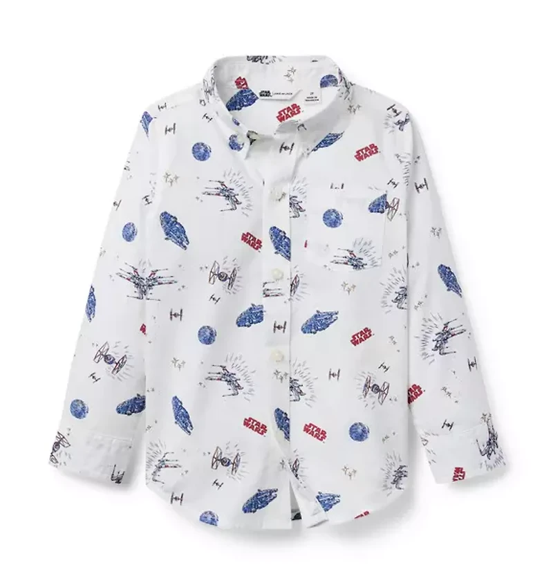 With an allover STAR WARS™ print, collar point buttons and a chest pocket too, our tailored shirt has a galaxy of details to love. 100% Cotton Poplin Long Sleeve Button Front Chest Pocket Shirttail Hem; Center Back Pleat Online Exclusive Machine Washable; Imported