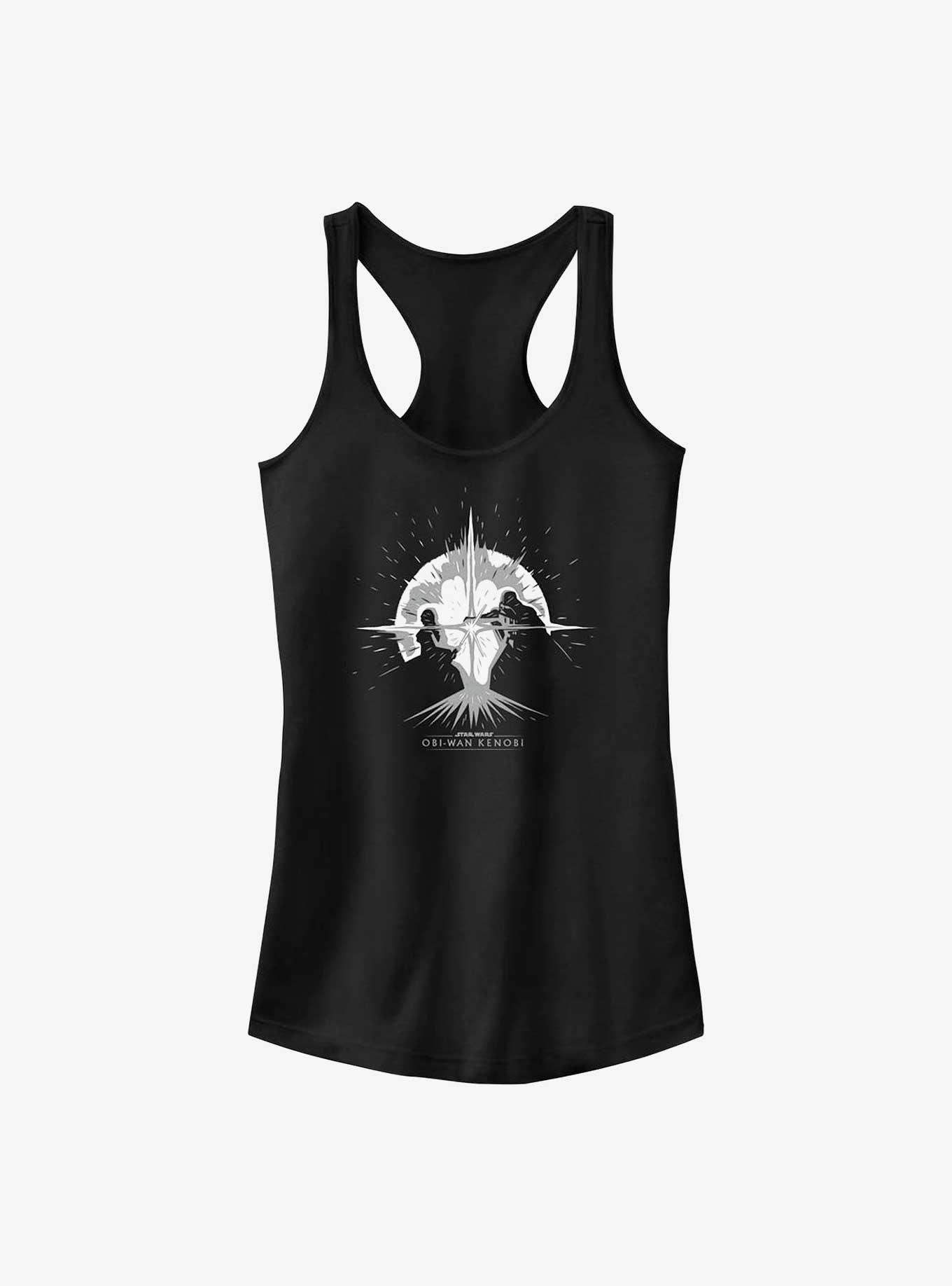 They're back at it! This black racerback tank -- inspired by the series Star Wars: Obi-Wan Kenobi -- captures the explosive duel between the Jedi Master and Darth Vader. Pow!