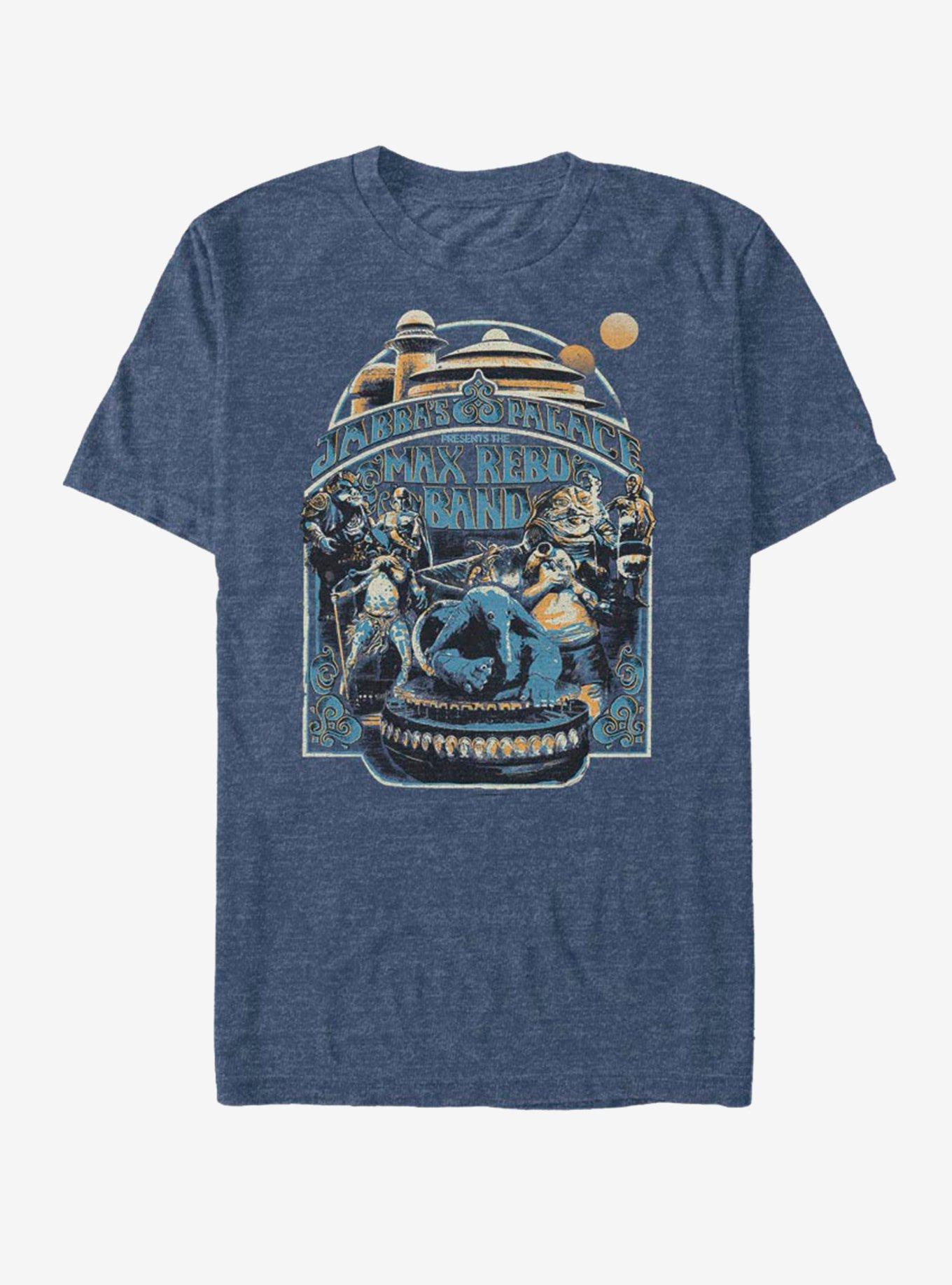 Appearing live at Jabba's Palace -- it's the Max Rebo Band with Sy Snootles! This lightweight heather navy blue tee celebrates the alien pop group that first appeared in Star Wars: Episode VI - Return of the Jedi .