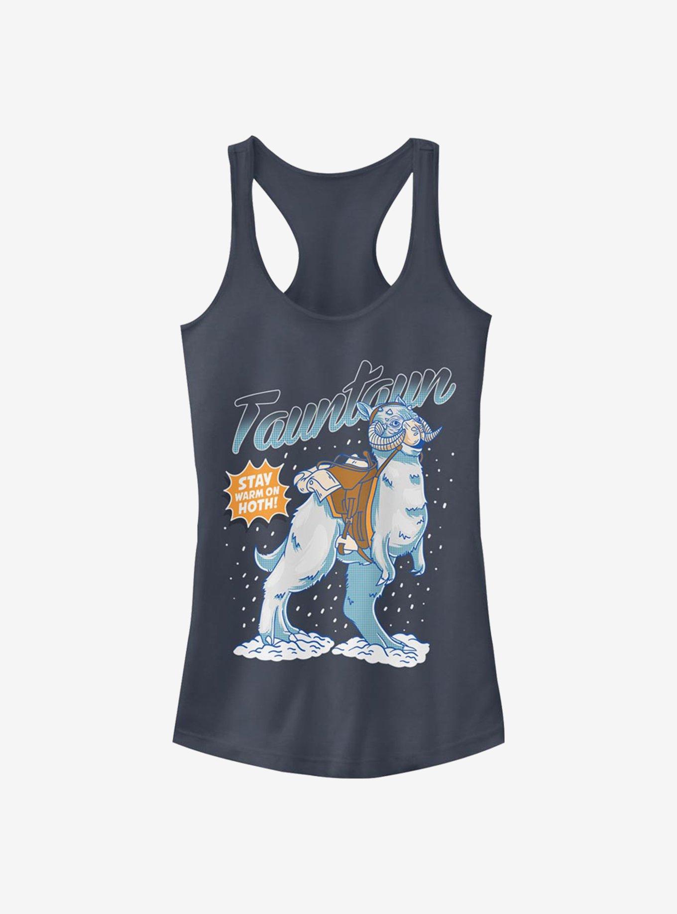 And you thought they smelled bad on the outside! This indigo blue racerback Star Wars tank features a (thankfully living) Tauntaun -- with verbiage that states, "Stay warm on Hoth!"
