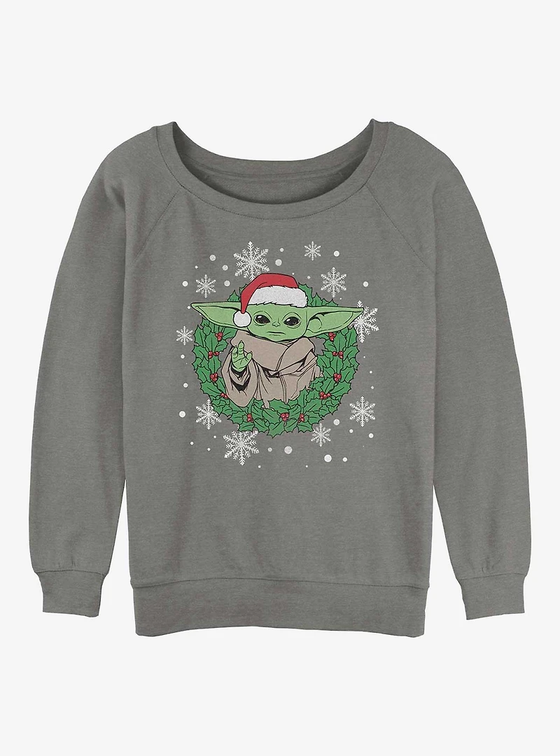 Star Wars The Mandalorian Galactic Holiday Wreath Womens Slouchy Sweatshirt