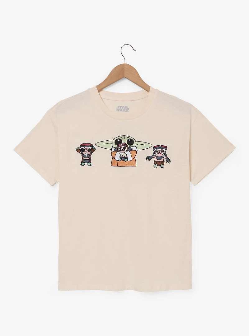 Star Wars The Mandalorian Grogu & Friends Embroidered Women's T-Shirt — BoxLunch ExclusiveStar Wars The Mandalorian Grogu & Friends Embroidered Women's T-Shirt — BoxLunch Exclusive