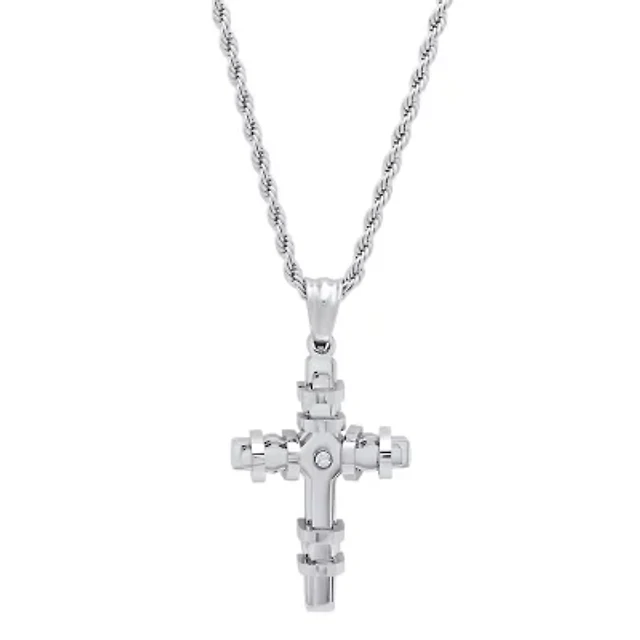 Steeltime Mens 2 1/4 CT. T.W. White Cubic Zirconia Stainless Steel Cross 24 Inch Pendant Necklace