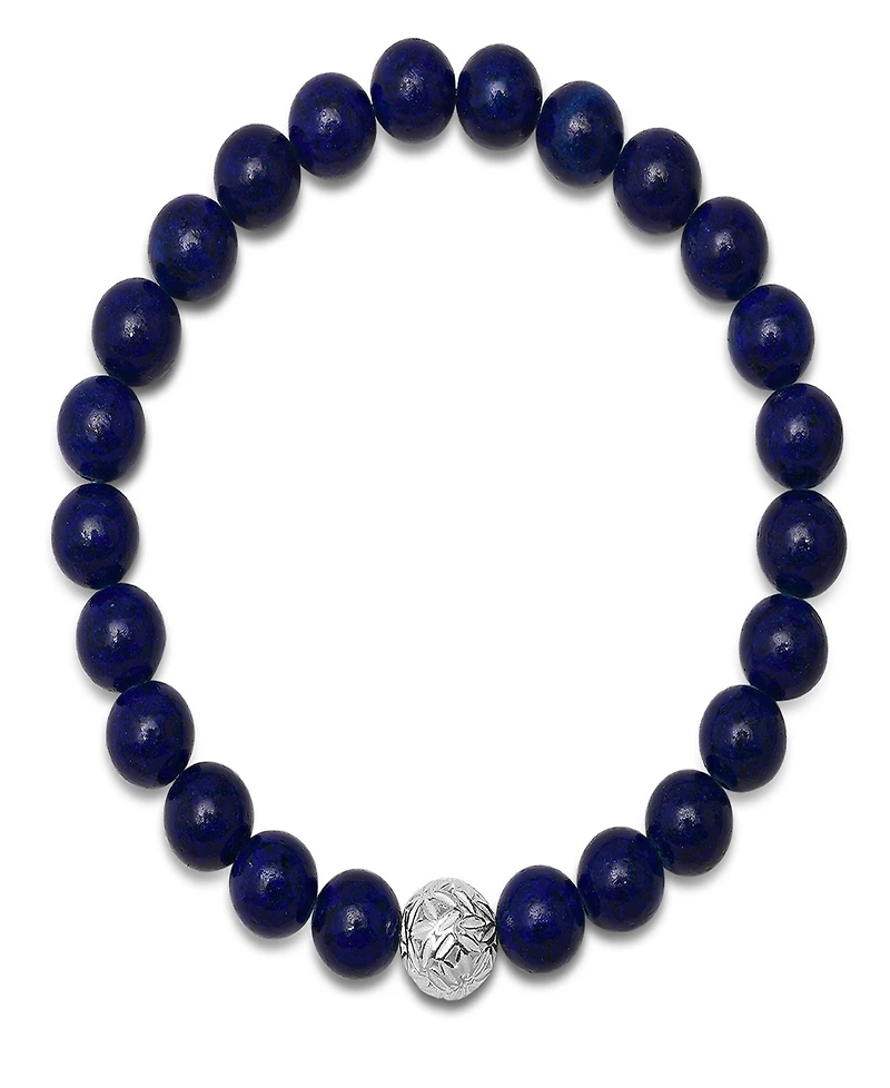 Steeltime Men's Lava Beads and Sterling Silver Bead Stretch Bracelet