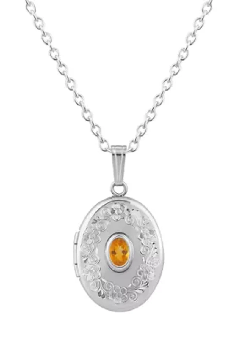 Sterling Silver 6x4mm Oval Citrine Locket Pendant Necklace