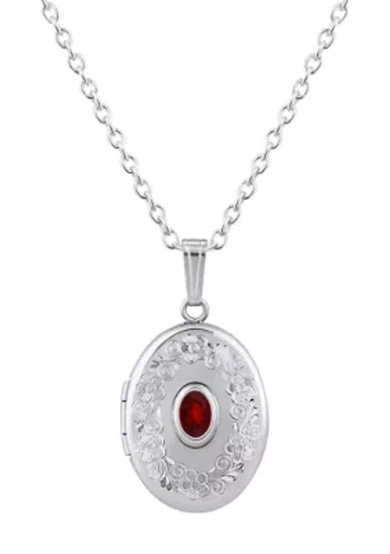 Sterling Silver 6x4mm Oval Garnet Locket Pendant Necklace