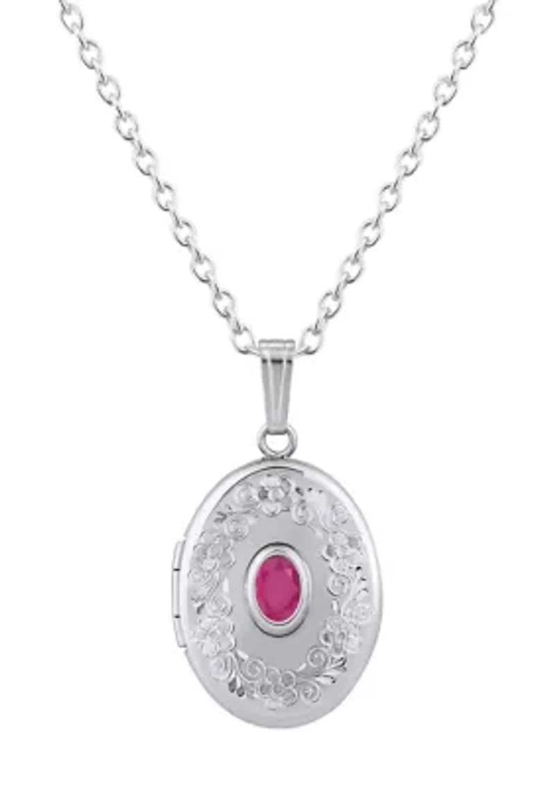 Sterling Silver 6x4mm Oval Ruby Locket Pendant Necklace