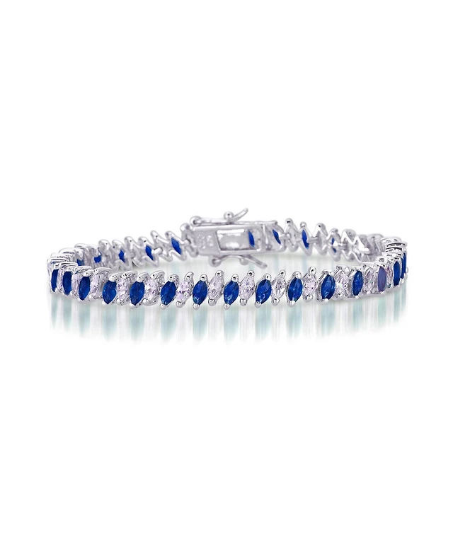 Sterling Silver Blue Cubic Zirconia Marquise Tennis Bracelet