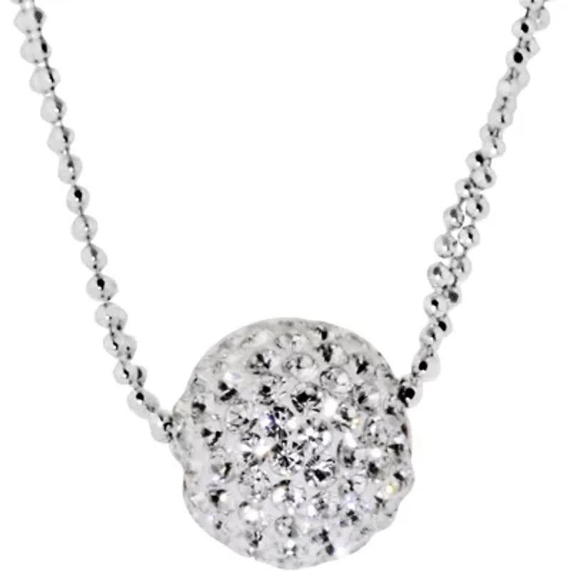 Look into your crystal ball and see double the glam in your future with this sterling silver necklace featuring two chains and a ball pendant with crystals all around.