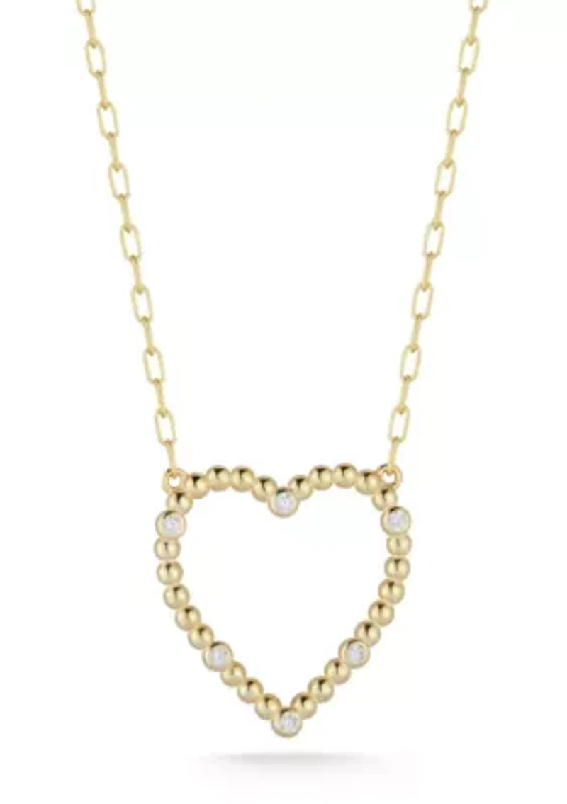 Sterling Silver CZ Open Beaded Heart Pendant Necklace
