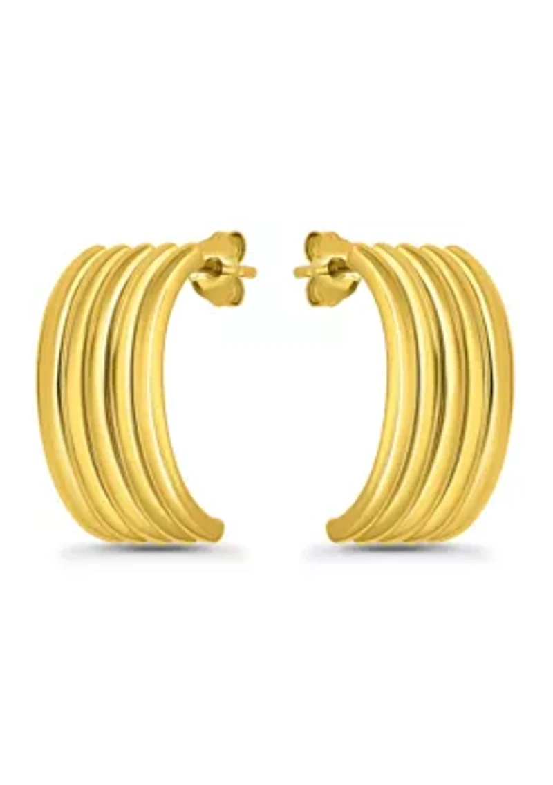 B.Brilliant's stunning hoop earrings are a must-have for any jewelry collection. Crafted from polished gold over silver or sterling silver, these earrings feature a unique five-row tubing design that adds a touch of elegance to any outfit. With their post back and sterling silver design, these earrings are comfortable and secure to wear all day long. These earrings are the perfect size for everyday wear. Post back earring Polished finish Imported Product Specifications 10 mm L x 20 mm W Material & Care Gold over sterling silver, sterling silver Clean with a soft cloth
