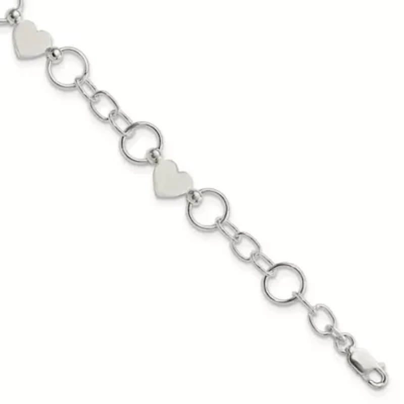 Rendered from quality sterling silver, this heart bracelet makes an ideal gift for your special someone. Featuring heart and open circle links this 7.5-inch long and 9mm wide bracelet is sure to turn heads. Buffed for lustrous shine, this stunning bracelet encloses with lobster clasp for worry free movement. Lobster closure Polished finish INDIA Imported Belk Exclusive Product Specifications 9-mm Width x 7.5-in., 7.5-in. Material & Care Metal, Sterling silver Clean with a soft cloth.