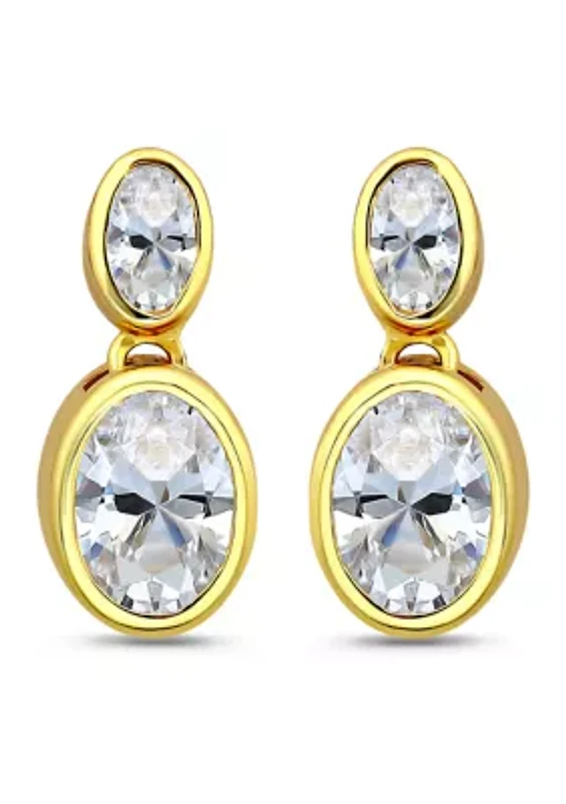 Sterling Silver Oval Cut Cubic Zirconia Bezel Drop Earrings