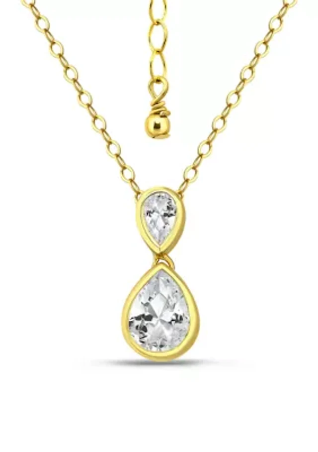 Gold Plated Sterling Silver Pear Cubic Zirconia Chain Necklace